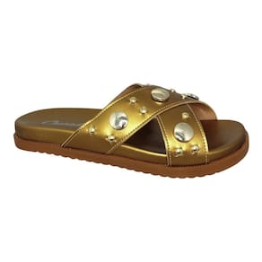 Chinelo Rasteira Feminino Ousadia Em X Metalizado 097.125 - Amarelo Ouro - 34
