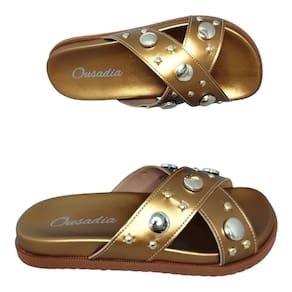 Design Elegante Com tiras em formato de X metalizado, este chinelo destaca-se pelo seu design moderno e sofisticado. O acabamento metalizado oferece um toque de glamour, ideal para complementar tanto looks casuais quanto mais elaborados.