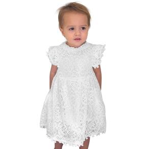 Vestido Infantil Branco em Renda com Manga Curta Batizado - Branco - 8