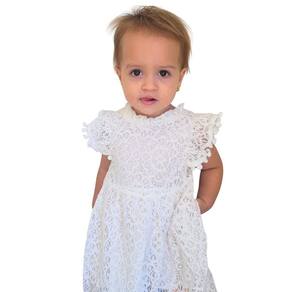 Vestido Infantil Branco em Renda com Manga Curta Delicada