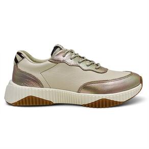Tênis Couro Feminino Casual Confortável Versátil - 36 - Bege