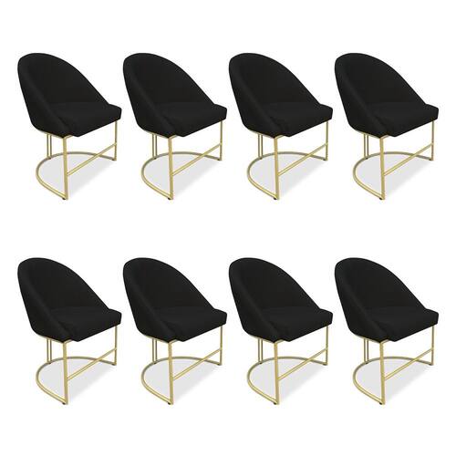 Kit 08 Cadeiras Poltrona de Jantar Bela Veludo Base Metálica Industrial Dourado - Pallazio - Preto