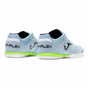 A Chuteira Joma Top Flex Futsal possui um cabedal em couro natural que proporciona maior conforto aos seus pés, além de pontos estratégicos reforçados em camurça para melhorar a precisão do chute e aumentar a durabilidade. Possui também, palmilha em EVA removível aliada a uma outra palmilha fixa costurada na base da chuteira que permite melhor acomodação ao pé do jogador, uma entressola que combina amortecimento e flexibilidade na medida exata, e um solado super-resistente e flexível, sendo assim, um ícone do futsal!