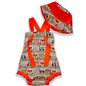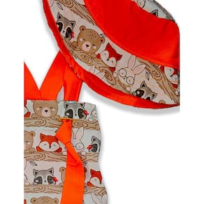 Jardineira Banho de sol bebê bichinhos + chapéu de Praia Romper luxo - G - Laranja
