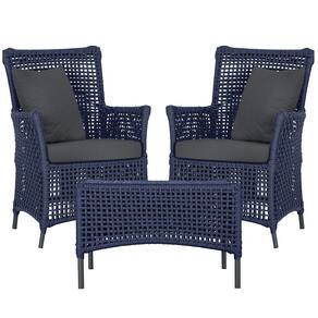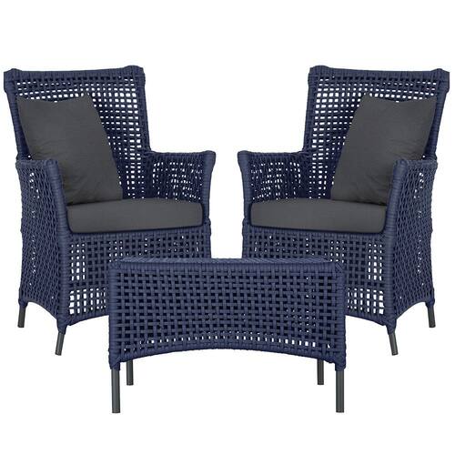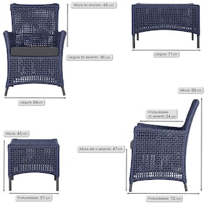 2 Poltronas e 1 Mesa Igapó em Alumínio Pintura Preta Corda Náutica Estofado 11 - Azul