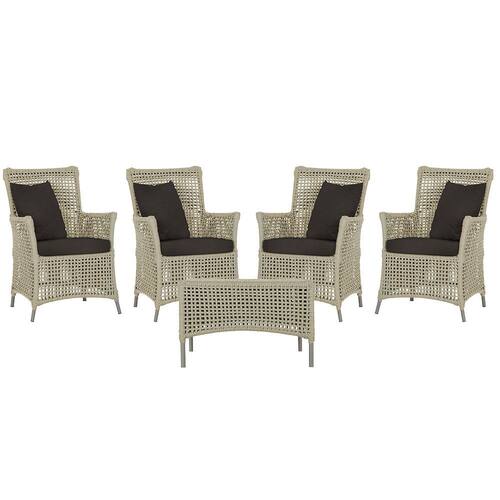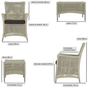 4 Poltronas e 1 Mesa Igapó em Alumínio - Bege