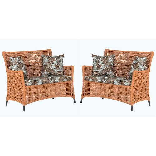 2 Sofás Área Externa Igapó Alumínio Pintura Preta Corda Náutica Estofado Impermeável 6 - Laranja