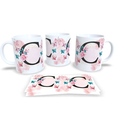 Caneca de porcelana de alto brilho, com alça e interior branca Coleção Alfabeto Iniciais Nomes.
