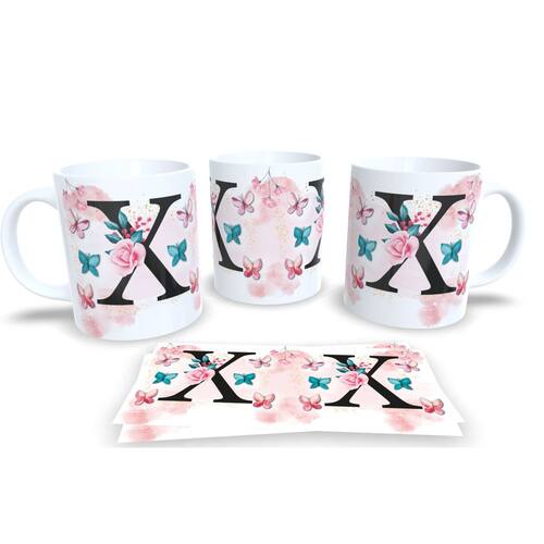 Caneca de porcelana de alto brilho, com alça e interior branca Coleção Alfabeto Iniciais Nomes.