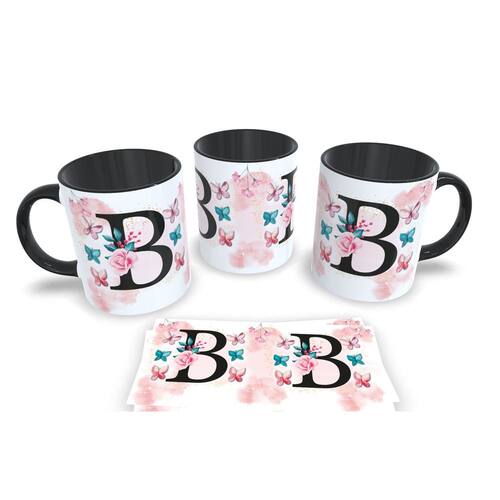 Caneca de porcelana de alto brilho, com alça e interior Preta Coleção Alfabeto Iniciais Nomes.