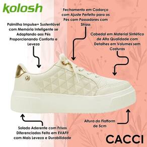Seja para compor looks despojados ou mais elegantes, o Tênis Casual Flatform Kolosh é o aliado perfeito para quem deseja estar na moda, confortável e cheia de atitude!