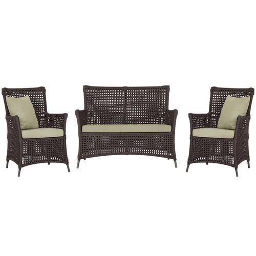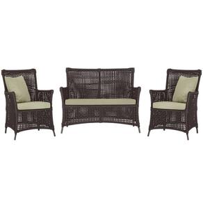 Jogo Sofá e 2 Poltronas de Área Igapó Alumínio Pintura Marrom Corda Náutica Estofado 7 Trama - Marrom Escuro