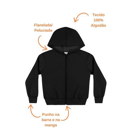 Jaqueta Moletom Flanelado Punho e Capuz Unissex Infantil Cores - Preto - 8