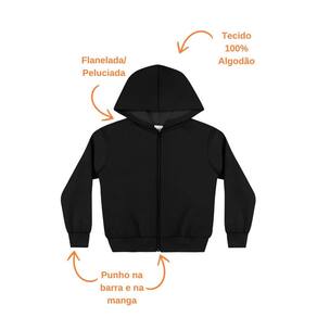 Jaqueta Moletom Flanelado Punho e Capuz Unissex Infantil Cores - Jaqueta Moletom Flanelado com Punho e Capuz Unissex Infantil Preto: Proteção e Conforto para Todos os Dias
