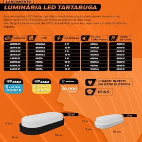 Luminária Led Tartaruga Branco Foxlux - 5W | 6500K