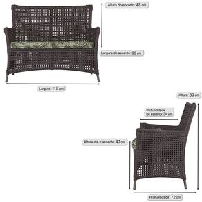 Jogo Sofá e 2 Poltronas e Mesa Igapó Alumínio - Marrom Chocolate
