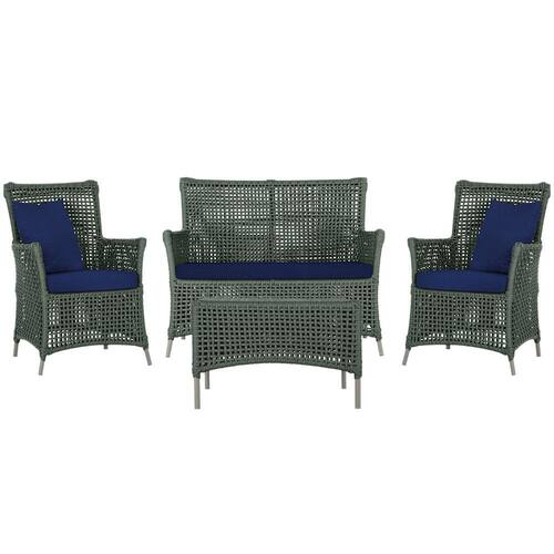 Jogo Sofá e 2 Poltronas e Mesa Igapó Alumínio - Verde Musgo