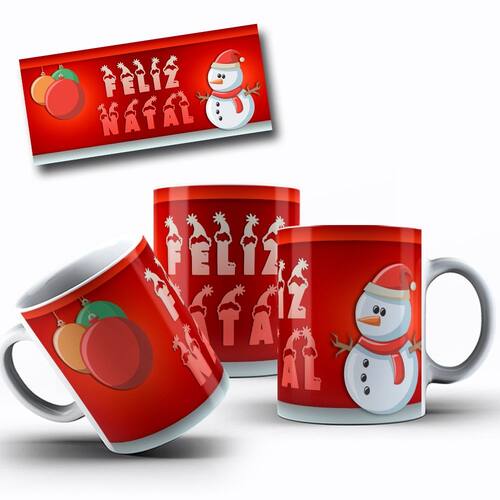 Caneca de porcelana de alto brilho, com alça e interior branca Coleção Natal.