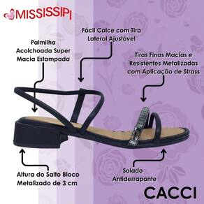 Com a Sandália Feminina Salto Baixo Mississipi, você estará pronta para arrasar com muito conforto e elegância. Não perca essa chance de adicionar essa peça única ao seu guarda-roupa!
