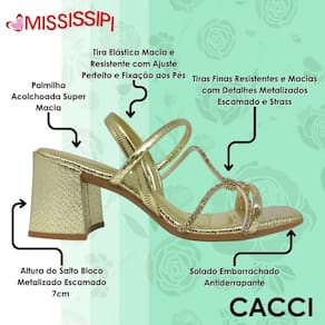 Garanta já a sua sandália Mississipi de salto bloco médio metalizada escamada e arrase com estilo, conforto e brilho!