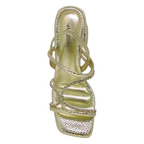 Tiras Finas com Detalhes Metalizados e Strass: Elegância nos detalhes, que trazem sofisticação e um brilho discreto ao seu look.