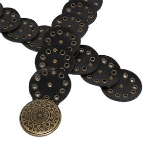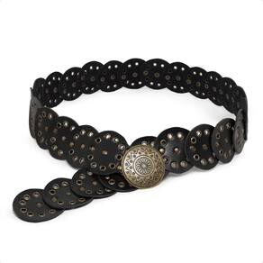 Cinto Boho Chic Feminino Estilo Ocidental Redondo Western Fivela Ouro Velho Moderno Tendencia Festa - Preto - P