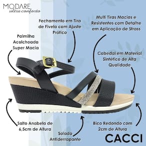 Sandália Feminina Anabela Média Comforto e Brilho Modare - 34 - Preto