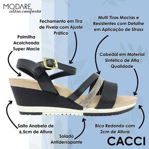 Sandália Feminina Anabela Média Comforto e Brilho Modare - 33 - Preto