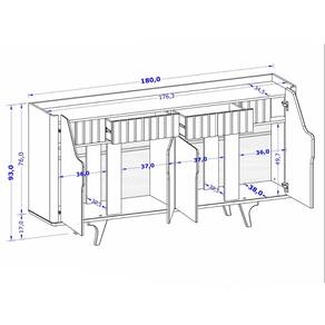 O Aparador Danúbio é o móvel que sua casa precisa! Ele possui design moderno que mescla suas curvas nas portas e laterais com detalhe em ripado real. Ele conta com Base em MDF de 25mm chanfrada em ângulo, portas em MDF chanfrada com design único que proporciona ao produto beleza charme e requinte como nenhum outro entrega! Cantos curvos feitos em MDF, amplo tampo e prateleira ajustável. Gavetas com corrediças telescópicas, sendo as frentes em ripado real. Pés em madeira maciça que garantem ainda mais resistência e qualidade ao produto.