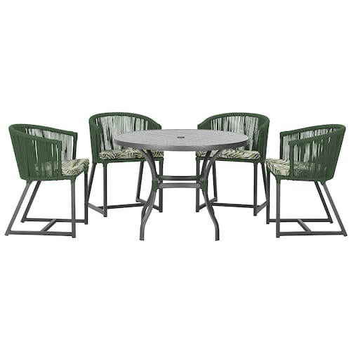 Mesa com 4 Cadeiras de Jantar Roma 100cm e Noronha em Aluminío - Verde Musgo