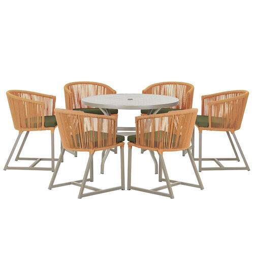 Mesa com 6 Cadeiras de Jantar Roma 120cm e Noronha em Alumínio - Laranja