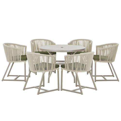 Mesa com 6 Cadeiras de Jantar Roma 120cm e Noronha em Alumínio - Bege Médio