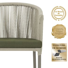 Combinando estilo e resistência, esta Mesa e cadeiras traz o melhor do design contemporâneo em alumínio com micro pintura e acabamento em corda náutica. O Estofado impermeável completa o conforto e a funcionalidade, tornando-a ideal para ambientes externos e internos.