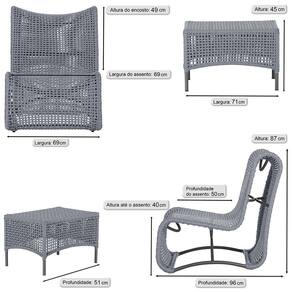 2 Poltrona e Mesa Texas em Alumínio Trama - Prata