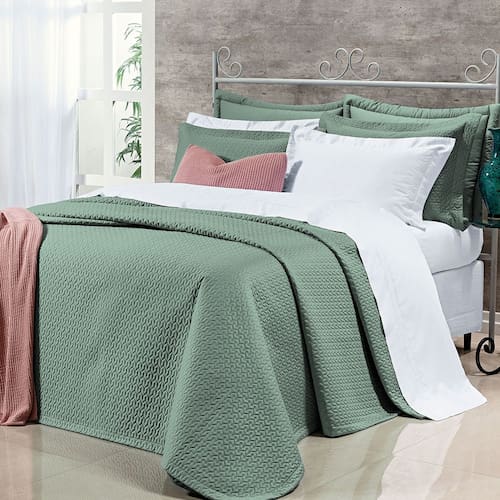 Colcha Cobre Leito Super King 100% Algodão Egípcio Percal 400 Fios 3 peças Pádua - Verde