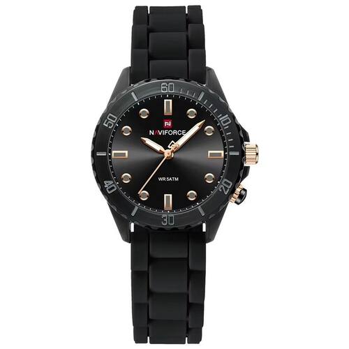 Relógio de quartzo feminino design casual pulseira de silicone 5atm à prova d´agua - preto