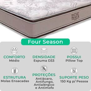 Cama Box Baú e Colchão Four Season Molas V-Store 78x188x30 - Branco