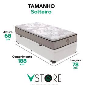 A tecnologia que a sua casa merece está na V-Store! O Conjunto Colchão Four Seasons e Base Box Baú Bravus é a solução ideal para quem busca conforto, durabilidade e praticidade. O colchão, com molas ensacadas, pillow top e tecnologia EPS, oferece suporte independente e conforto térmico, enquanto o revestimento em malha 100% algodão e tratamentos antiácaro e antialérgico garantem mais saúde e bem-estar. A Base Box Baú Bravus, feita com madeira reflorestada e revestida com tecido sintético, combina resistência, elegância e funcionalidade, oferecendo um excelente espaço de armazenamento e otimizando o seu quarto.Característica Do Colchão: Modelo: Four SeasonMarca: V-StoreTamanho: SolteiroDimensões: 78x30x188 (Largura x Altura x Comprimento)Conforto: MédioSistema: Molas EnsacadasPillow: Pillow TopPeso Máximo recomendado: 150 kg (Por pessoa)Proteções: Antiácaro, antialérgico, antifungo, antimofoGarantia: 12 Meses (Espuma) / 10 anos ( Conjunto de Molas Ensacadas)Característica Da Base: Marca: V-StoreModelo: BravusTamanho: SolteiroDimensões: 78x44x188 (Largura x Altura x Comprimento)Estrutura: MadeiraPeso máximo recomendado: 150 kg (Por Pessoa)Altura do Box: 38 cmAltura dos Pés: 6 cmAltura total: 44 cmGarantia: 12 Meses (Estrutura) / 3 meses (Tecido)Selo Ecologicamente CorretoAtenção:- Antes de finalizar sua compra, recomendamos que verifique se as dimensões do produto são adequadas para serem transportadas pelos elevadores, portas, escadas e corredores de sua residência. Ressaltamos que não nos responsabilizamos pelo transporte do produto por meios específicos, como escadas, guinchos ou içamentos.- É possível que hajam leves variações de cor de acordo com o dispositivo que está sendo utilizado como smartphones, computadores, monitores e outros.