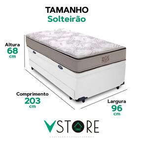 A tecnologia que a sua casa merece está na V-Store! A tecnologia e funcionalidade que sua casa merece estão aqui! O Conjunto Colchão Dallas e Bicama com Cama Auxiliar e Baú oferece conforto, praticidade e estilo. O colchão, com molas ensacadas, espuma D33, Euro Pillow e tecnologia EPS, proporciona excelente suporte, durabilidade e conforto térmico. A bicama, com cama auxiliar e baú espaçoso, otimiza o espaço do seu quarto, oferecendo suporte confortável para visitas e armazenamento extra para organizar o ambiente. Revestida com tecido sintético resistente, garante durabilidade e facilidade de manutenção. Característica Do Colchão: Modelo: Four SeasonMarca: V-StoreTamanho: SolteirãoDimensões: 96x30x203 (Largura x Altura x Comprimento)Conforto: MédioSistema: Molas EnsacadasPillow: Pillow TopPeso Máximo recomendado: 150 kg (Por pessoa)Proteções: Antiácaro, antialérgico, antifungo, antimofoGarantia: 12 Meses (Espuma) / 10 anos ( Conjunto de Molas Ensacadas)Característica Da Base: Marca: V-StoreModelo: Bicama com BaúTamanho: SolteirãoDimensões: 96x44x203 (Largura x Altura x Comprimento)Estrutura: MadeiraPeso máximo recomendado: 150 kg (Por Pessoa)Altura do Box: 38 cmAltura dos Pés: 6 cmAltura total: 44 cmMedida Cama Auxiliar: 96x44x203 (LxAxC) cmGarantia: 12 Meses (Estrutura e Estofamento) / 3 Meses (Tecido)Selo Ecologicamente CorretoAtenção:- Antes de finalizar sua compra, recomendamos que verifique se as dimensões do produto são adequadas para serem transportadas pelos elevadores, portas, escadas e corredores de sua residência. Ressaltamos que não nos responsabilizamos pelo transporte do produto por meios específicos, como escadas, guinchos ou içamentos.- É possível que hajam leves variações de cor de acordo com o dispositivo que está sendo utilizado como smartphones, computadores, monitores e outros.