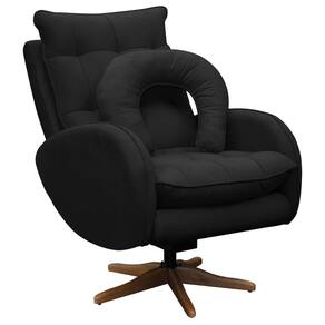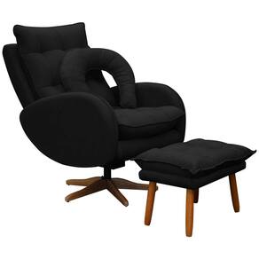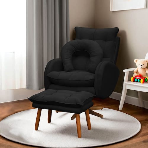 Kit Poltrona de Amamentação Base Giratória Balanço e Puff Angra Veludo - SOFA STORE - Preto
