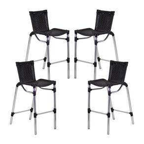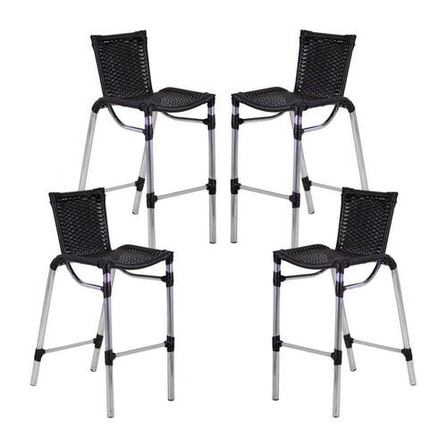 4 Banquetas Em Alumínio Fortaleza Alta Com Encosto para Cozinha Edícula e Balcão - Preto