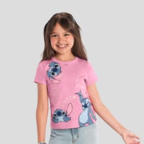 Deixe a imaginação da sua pequena voar para fora deste planeta com a blusa infantil para meninas do Stitch da Brandili! Confeccionada em malha macia com manga curta e gola redonda, ela oferece o máximo de conforto para que sua pequena possa viver suas próprias aventuras alienígenas. A estampa colorida do Stitch, acompanhada de escritas e detalhes em glitter, traz um brilho extra, deixando a peça ainda mais encantadora e cheia de personalidade. Com sua energia única, vai fazer com que sua pequena se destaque com muito estilo, perfeita para momentos de diversão. Essa blusa é ideal para combinar com jeans, saias ou leggings, criando looks que são um verdadeiro sucesso. Aposte nessa peça para o guarda-roupa de sua pequena