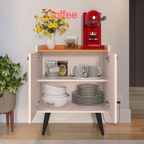 O Aparador Baden conta com uma adega para 6 garrafas e duas prateleiras internas, sendo ideal para montar um charmoso cantinho do café ou bar.