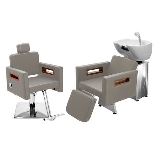 Kit Salão de Beleza 1 Cadeira Reclinável Quadrada + 1 Lavatório C/Ap Base Inox Tunísia - Cor: Fendi
