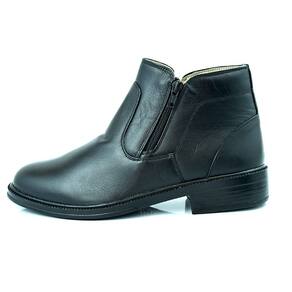 Bota Botina Social Em Couro Masculina Forro Cacharrel Ziper Bico Redondo Palmilha Confortavel - 40 - Preto