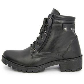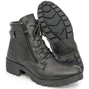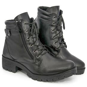 Para um melhor calço, oferece um zíper na lateral e cadarço facilitando seu uso.