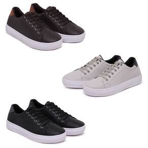 Kit 3 Sapatênis Casual Masculino Confort SF Ajuste Elástico - 37 - Marrom