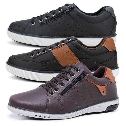 Kit 3 Sapatênis Casual Masculinos Fechamento Elástico Zíper - 42 - Marrom Chocolate