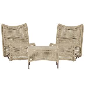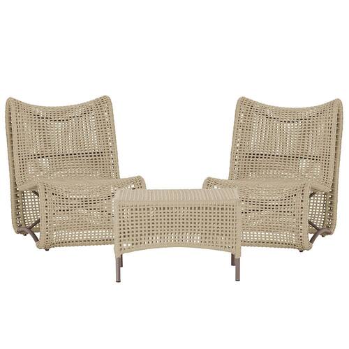Mesa e 2 Poltronas Texas em Alumínio Pintura Marrom Corda Náutica Trama - Bege Médio