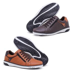 Kit 2 Pares Sapatênis Masculino Fechamento Elastico e Ziper - 44 - Marrom Chocolate